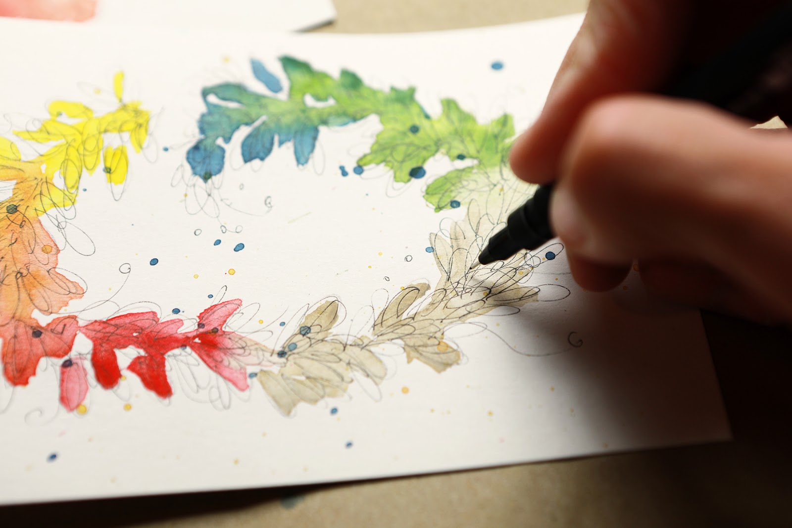 Use any watercolor paper and adhere your little wreath to a card (double sided tape).